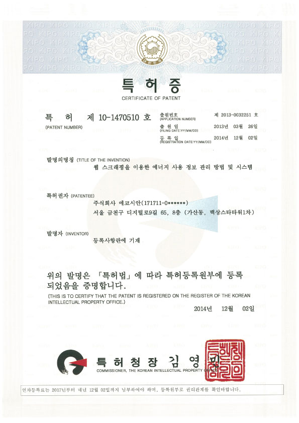 [GS인증] 에코시안 건물 에너지관리시스템(ES-BEMS] 소프트웨어 품질인증서